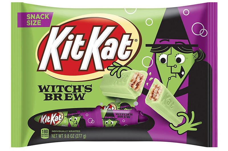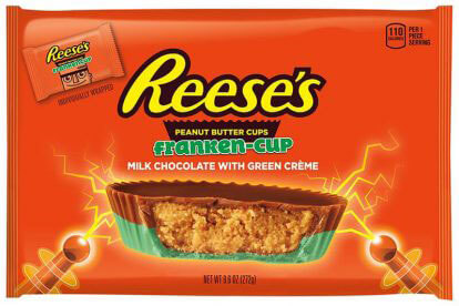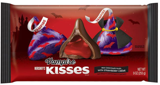 Hershey is introducing: Reese’s Franken Cups with franken-green crème; Hershey’s Kisses Vampire chocolates with strawberry-flavored crème; Hershey’s Cookies ‘N’ Crème Fangs in the shape of vampire fangs; and Kit Kat Witch’s Brew with marshmallows and franken-green crème.