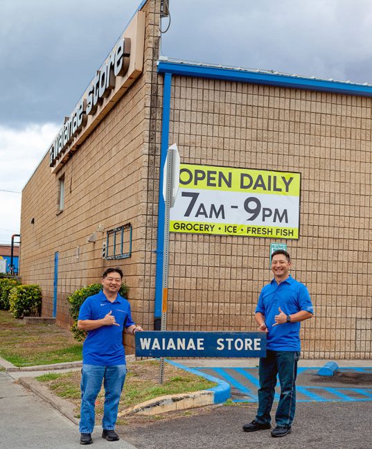 We have three stores, all under different names. The Waianae Store is our original store, and our grandparents, David and Betty Okimoto, opened it in 1949. Nanakuli Super opened five miles down the road in 1973. We acquired Friendly Market Center on the island of Molokai in 2017; that store was started by the Egusa family in 1953.