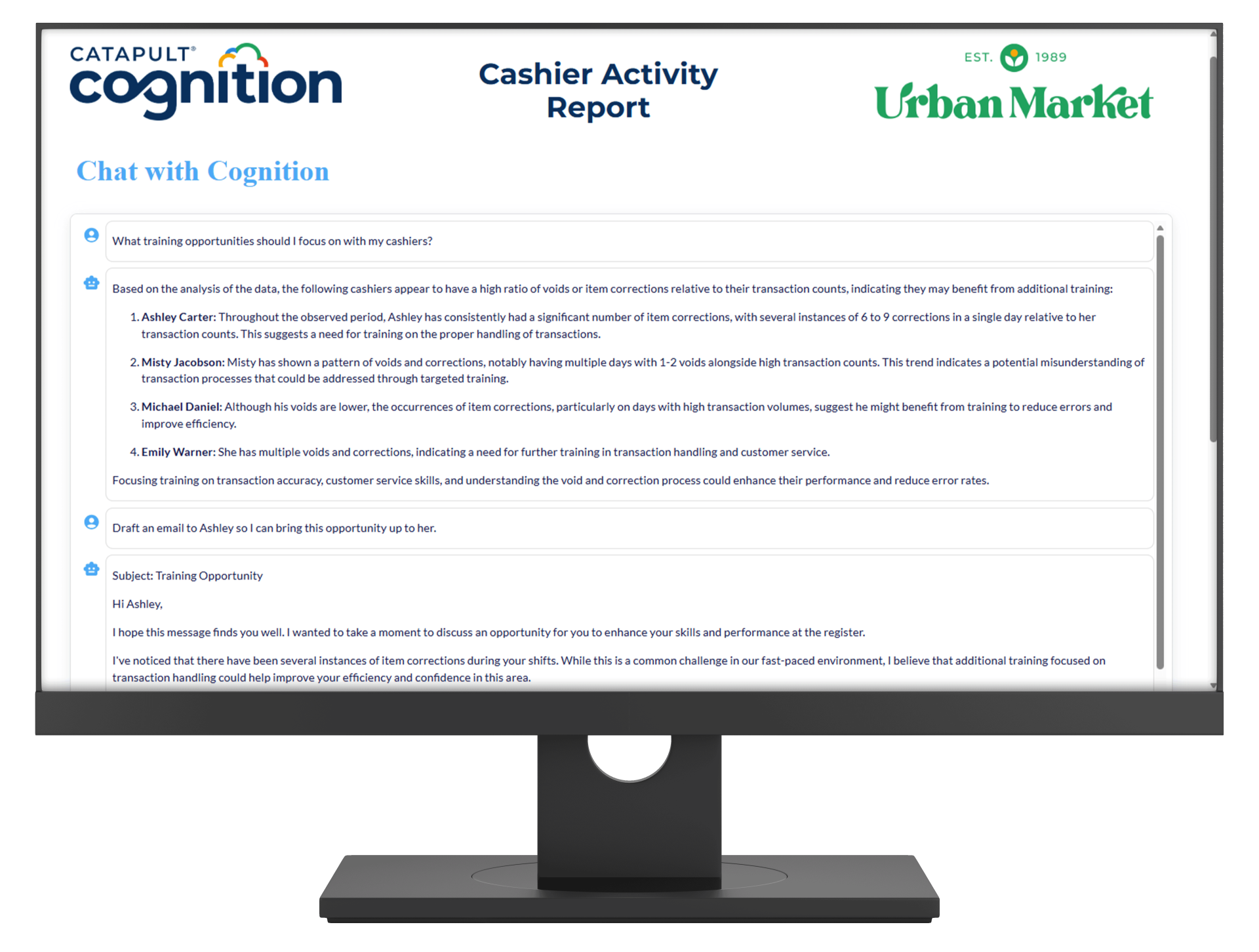 “Chat with Cognition lets retailers talk directly to their data and get immediate, meaningful insights. Whether you’re reviewing a dashboard, checking KPIs, or receiving your weekly sales report, Cognition can now analyze what matters most and enables you to act faster than ever.”