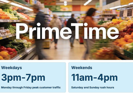 In operations-heavy environments, prime time is the predictable window when customer traffic peaks and the opportunity for sales, service and loyalty is at its highest. Weekday prime time typically runs from 3-7 p.m. and weekend prime time from 11 a.m.-4 p.m.